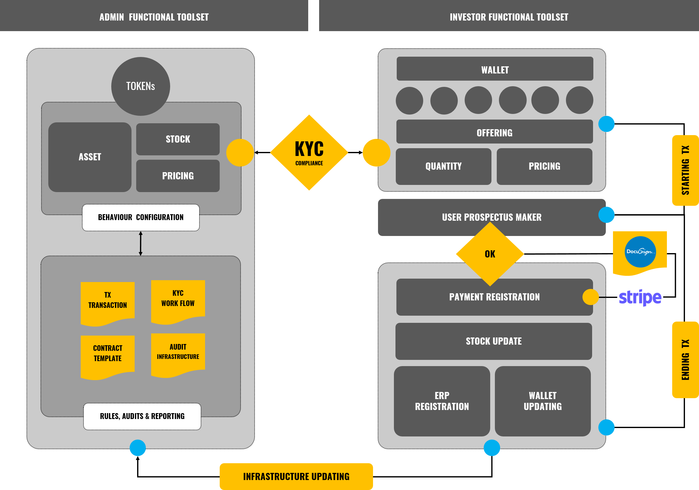 The Investment process is not only secured by the underlying infrastructure, but also, adds a digital signature and a controlled payment procedure that will allow the Investors to manage their operations with full guarantee